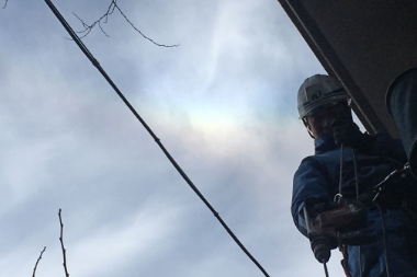 配電工事とは 住宅や店舗、工場などに電気を送るための電柱や電線などの設備を建設・改修する工事。配電工事を担う企業は、安定的に電気を送り届けるためのインフラを守り、皆さまの暮らしを支えています。
