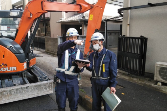 地中埋設工事とは、地面の中に電気のケーブルを配線する工事です。 電線を地中に埋めるため、電線が外に見えることなく見栄えがよくなります。 例えば住宅では、家の門灯に地中埋設工事で配線した電線を使うことが多いでしょう。