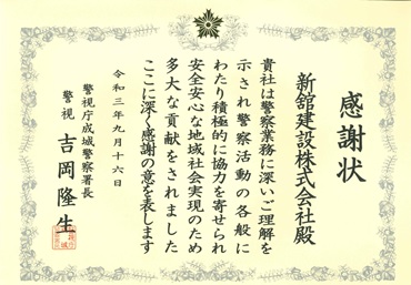 警視庁より感謝状をいただきました。今後においても地域社会実現を念頭に積極的な貢献活動に参加し、交通事故防止に向けた取り組みを図っていきたいと思います。