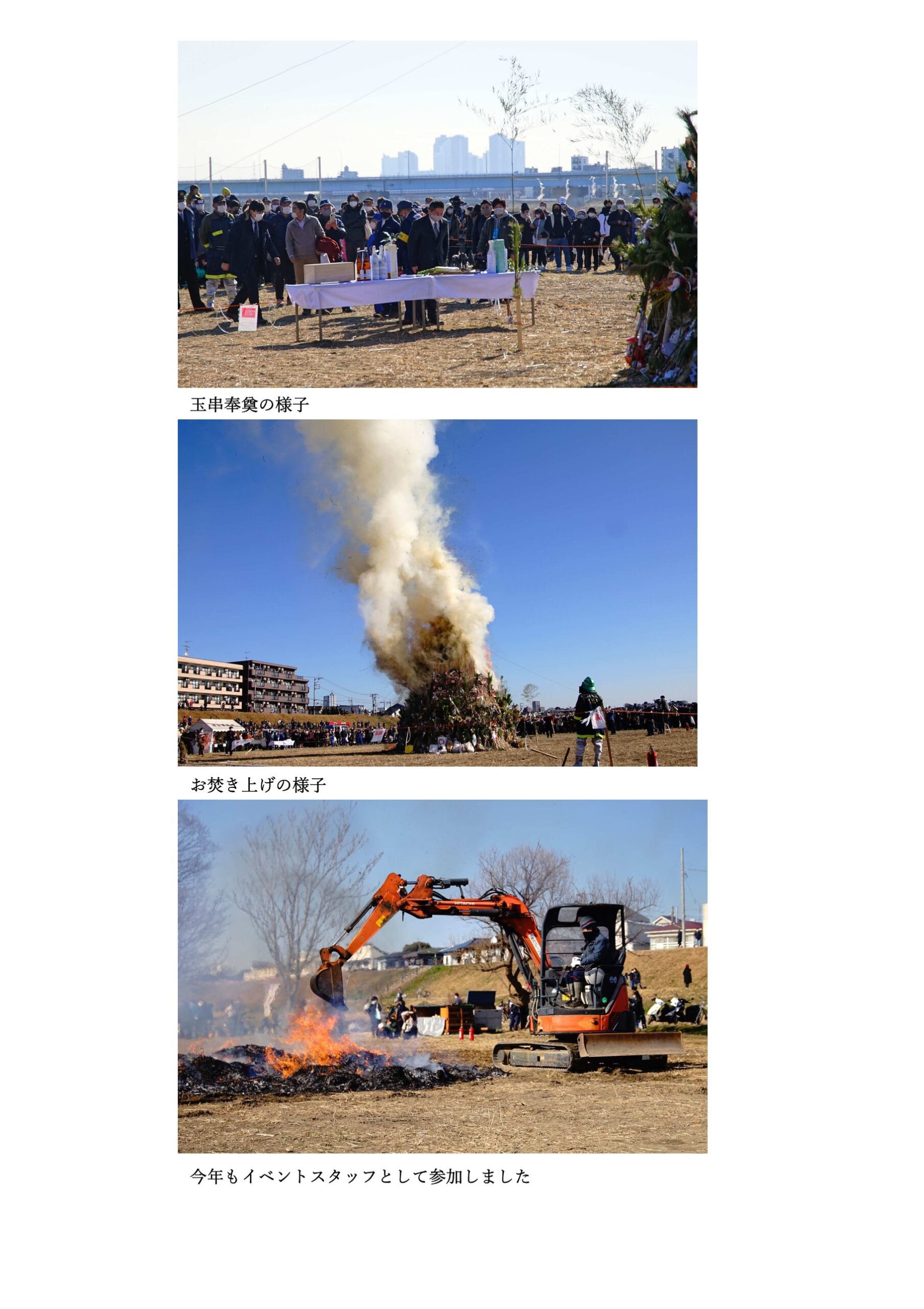 令和4年1月16日(日)に世田谷区鎌田南睦会主催のどんど焼きが多摩川河川敷で開催され、弊社社長も訪問し、社員の無病息災や商売繁盛を祈願し、玉串を捧げさせていただきました。コロナ渦にもかかわらずたくさんの方が訪れておりました。 どんど焼きは、お正月にお迎えした年神様を送り出し、取り外したしめ縄やお正月飾、や古いお札等を集めてお焚き上げする伝統行事です。その火や煙にあたると、1年間健康で過ごせるといわれています。 令和4年が素晴らしい年でありますように!