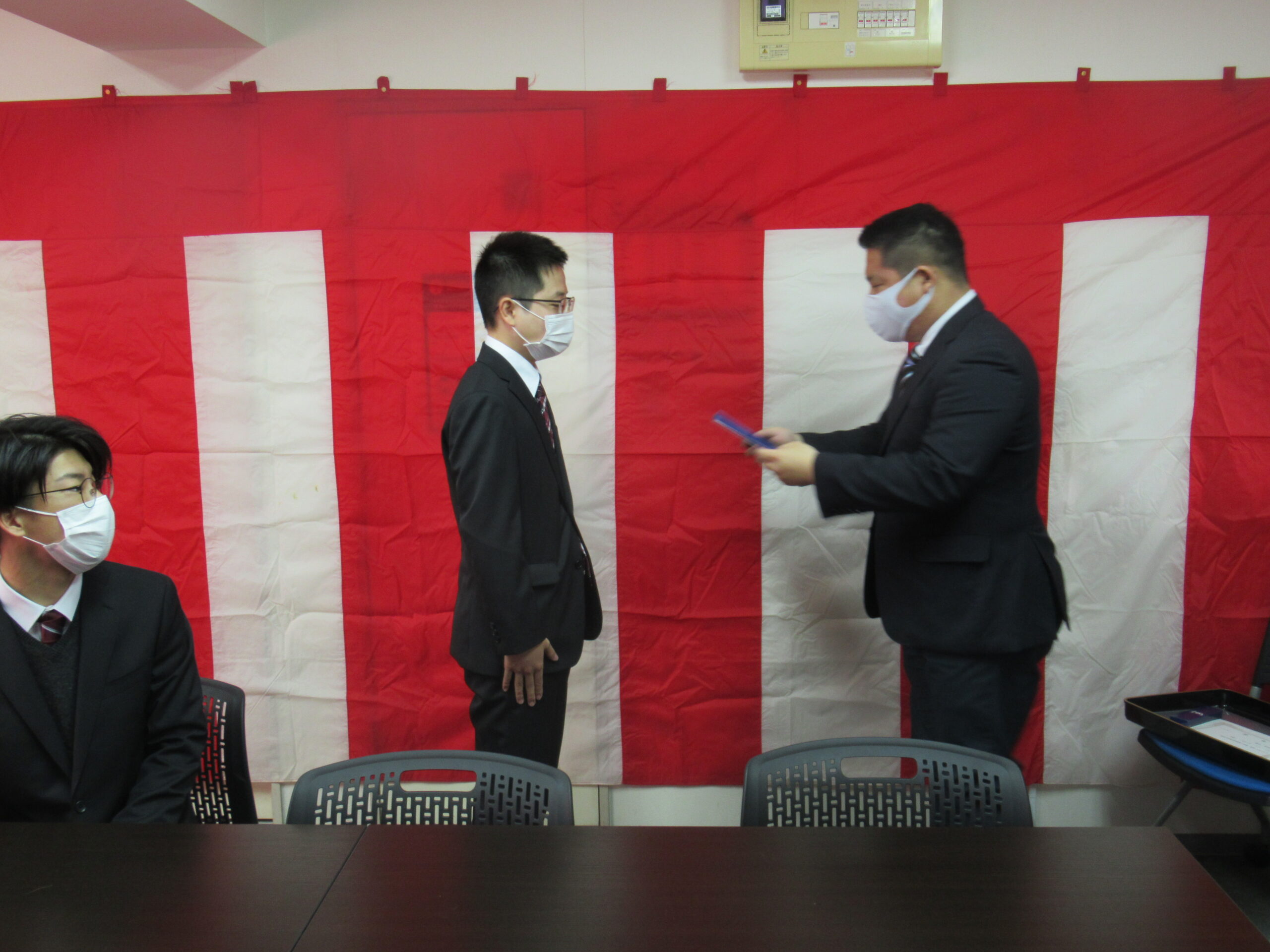 辞令交付では少し表情の硬さが見られましたが、辞令を受け取った後は顔が引き締まり社会人としての自覚を持ったようです。