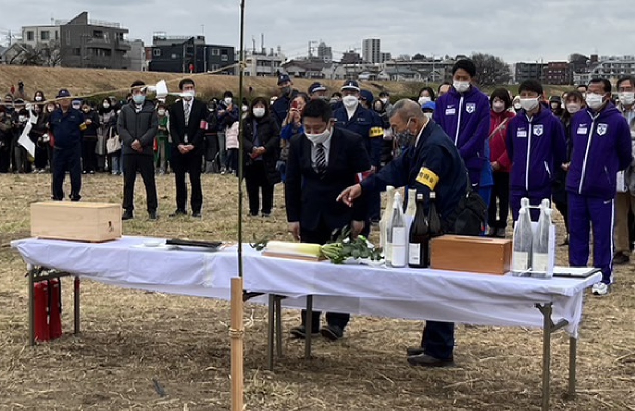 令和5年1月15日(日)に世田谷区鎌田南睦会主催のどんど焼きが多摩川河川敷にて開催されました。弊社も参加させていただき、玉串を捧げました。当日は天候があまり良くかなったものの、より多くの方が参加され、1年間の五穀豊穣や無病息災を祈願されていたようです。
