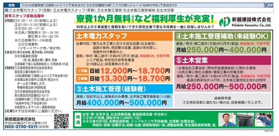 現場の人手不足が悩まされる昨今、弊社においても道路工事や上下水道工事等の公共事業 電気設備や地中電線等のインフラ整備、土壌汚染改良・雨水貯留槽等の環境対策事業を行っており、施工管理や技術作業員の確保を念頭に採用活動を行っております。 最近は若手社員や女性社員の採用を積極的に行っており、和気あいあいとした職場づくりに注力しております。 仲間づくりやコミュニケーションの活性化をモットーにしており、一人でも多くの仲間を歓迎していきますので、興味がある方は是非ホームページをご覧ください。