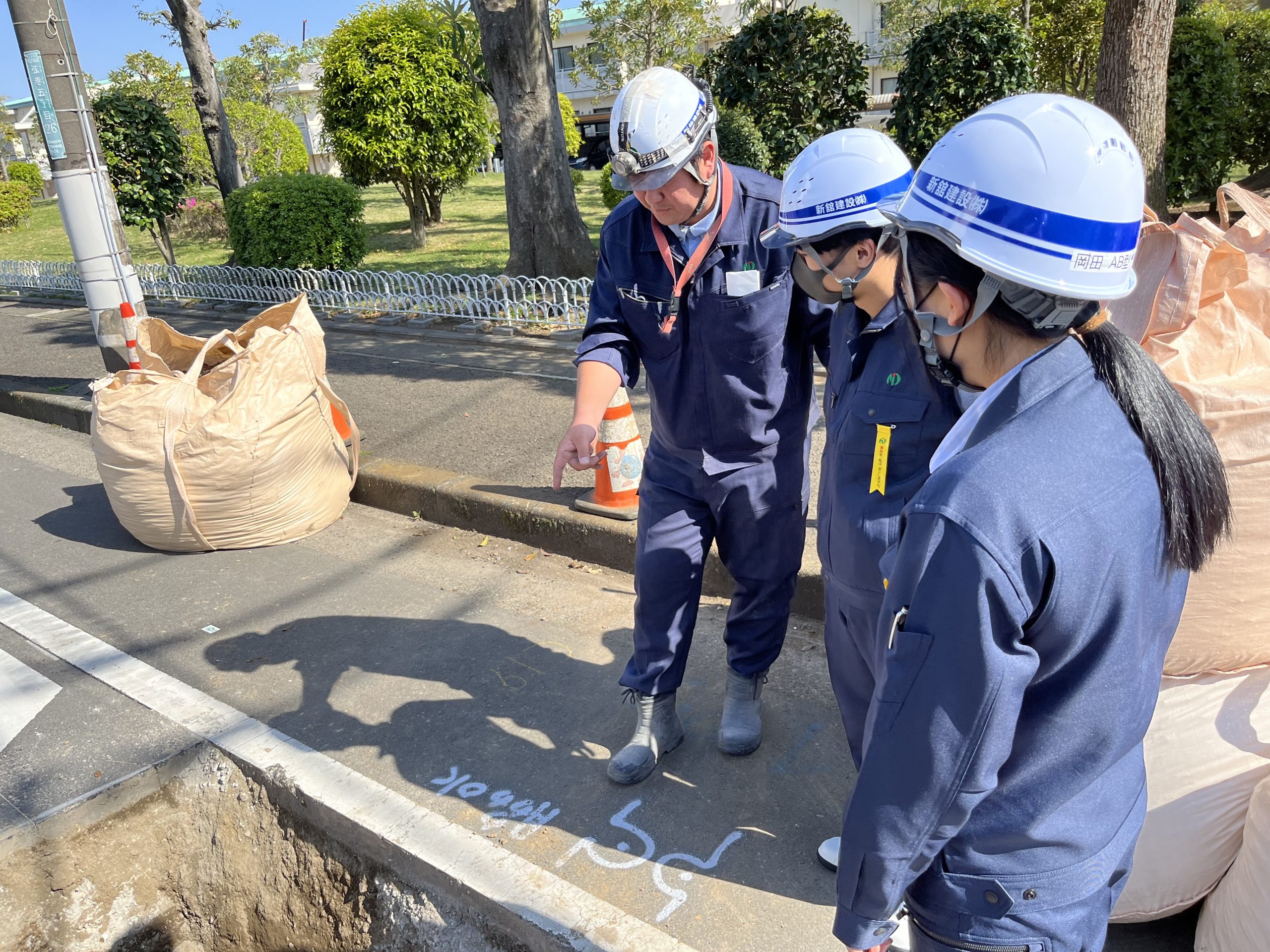 新卒社員が入社してから早いもので1か月以上が経ちました。現在は2名とも、土木工事をメインとして現場実習を行っており、作業手順や安全対策、現場に対する心得などについて日々学んでおります。右も左もわからない状況ですが、積極的に現場関係者とコミュニケーションをとるようになり、勉強に対する前向きな姿勢がうかがえます。日々楽しんで現場を見学し生き生きとしているようです。 これからもこの気持ちを忘れず、努力を惜しますに頑張ってください。