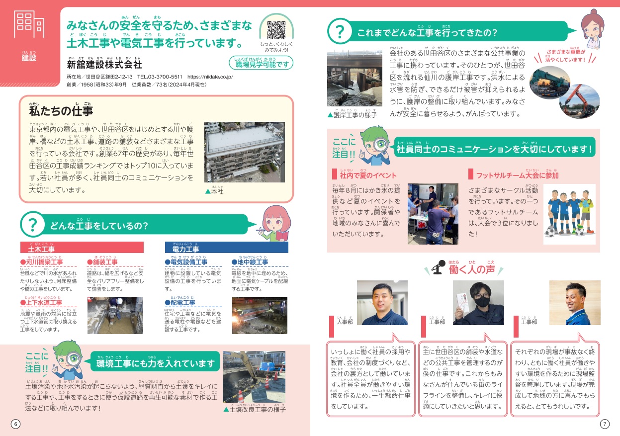 この度、新舘建設が「杉並区・世田谷区 小学生のためのお仕事ノート」に掲載されることになりました。本教科書は小学校中学年向けの教材で、杉並区や世田谷区の小学校で使用される予定です。児童たちはこの教科書を通じて、地域の仕事や職業について学ぶことができます。